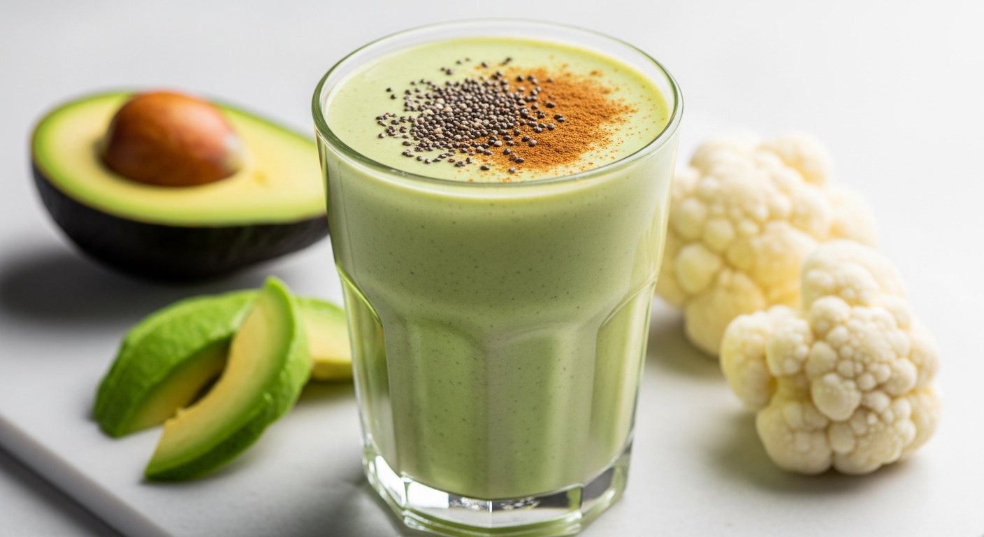 - Add the avocado and frozen cauliflower: These ingredients provide the creamy base without overpowering sweetness. They also keep carbs minimal while maximizing texture.