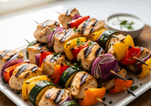 A1: Chicken kabobs are perfect for the air fryer because they cook quickly and evenly, delivering juicy meat with a delightfully crispy exterior. The air fryer’s circulating hot air crisps the chicken and veggies without drying them out, making for a hassle-free, flavor-packed meal in minutes.Q2: How do you keep chicken kabobs juicy inside but crispy outside?