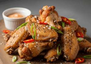 A1: it’s the perfect harmony of simplicity and bold flavor! The crunchy exterior dusted with fragrant salt, cracked black pepper, and sometimes a hint of chili flakes awakens your taste buds.Paired with juicy, tender meat inside, these wings deliver that crave-worthy punch without overwhelming your palate.