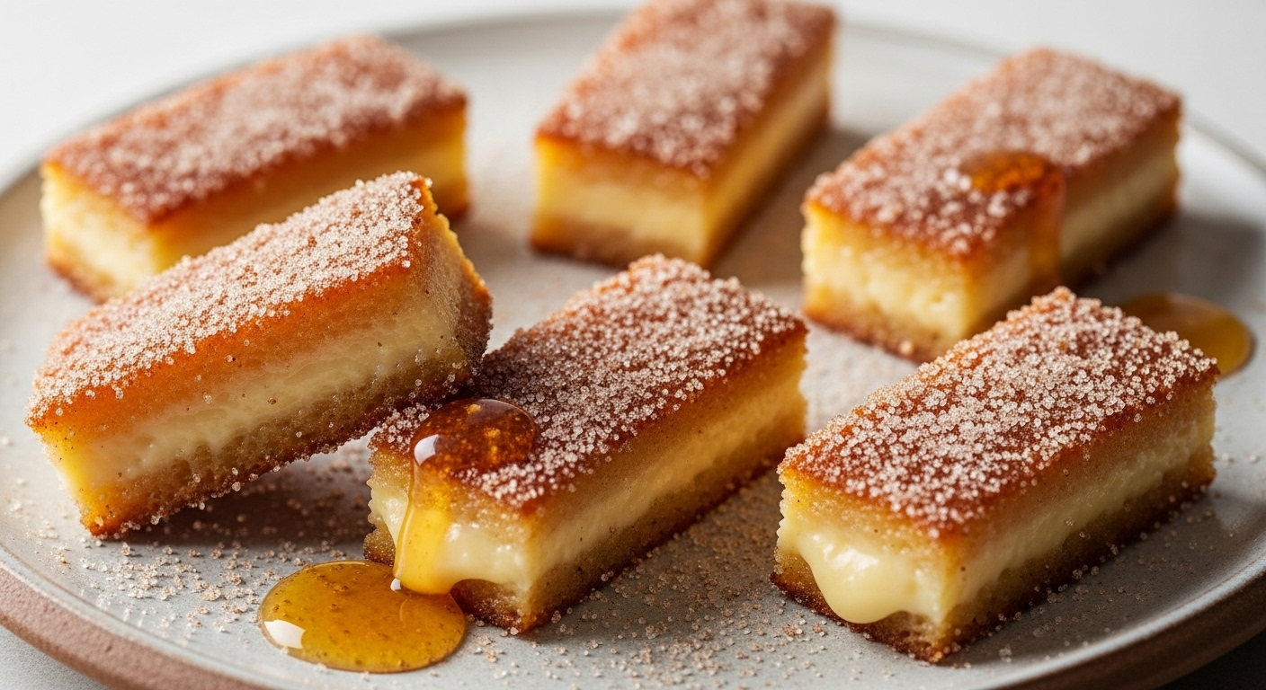 Serve pieces warm, ideally straight from frying. their rich custardy texture pairs beautifully with a scoop of vanilla or cinnamon ice cream, fresh berries, or a drizzle of honey caramel sauce. A cup of strong Spanish coffee or a glass of sweet PX sherry complements the warmth and spice notes perfectly. Garnish with a light dusting of cinnamon or a fresh mint sprig to add visual appeal and a touch of herbal brightness.