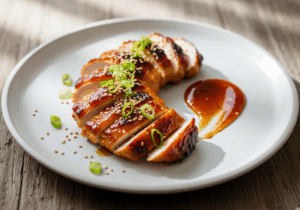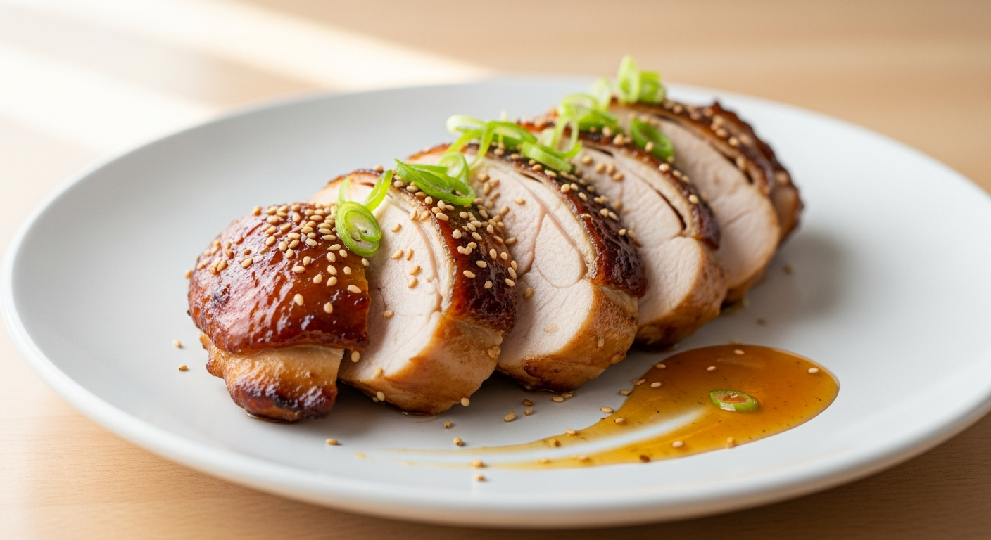 - Rest briefly and garnish: Let the chicken rest for 3 minutes before slicing. Sprinkle with fresh scallions and toasted sesame seeds for a vibrant finish.
