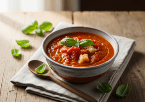 A1: Pappa al Pomodoro is a traditional Tuscan tomato soup that celebrates simplicity and rustic charm. At its heart, it’s a thick, comforting stew made from ripe tomatoes, stale bread, garlic, olive oil, and fresh basil. The name “pappa” means ”mush” or “pap” in Italian, reflecting its hearty, almost porridge-like texture.