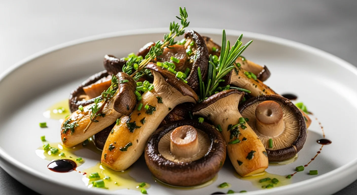 Savor the Earth Creative Vegan Mushroom Recipes showing perfectly sautéed mushrooms with fresh herbs